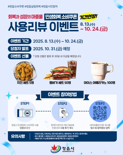 정읍시, 민생회복 소비쿠폰 이벤트 24일까지 연장…“참여하고 선물 받으세요” |