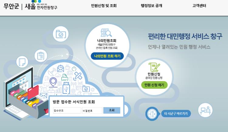 무안군청 홈페이지에 개설된 무안군 전자민원창구 |
