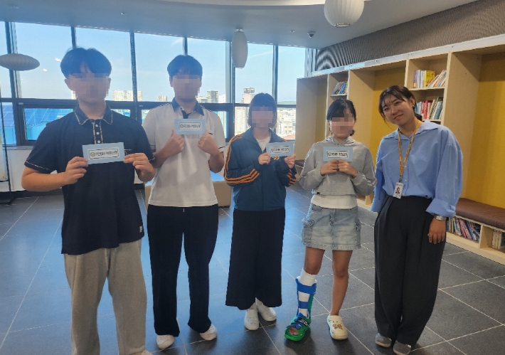 청소년상담복지센터를 통해 무안경찰서 후원금을 전달받은 청소년들 |