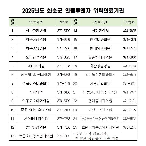 2025년도 화순군 인플루엔자 위탁의료기관 |