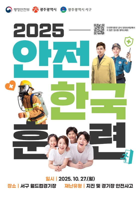 현장훈련은 다중이용시설인 광주월드컵경기장에서 지진과 전기차 화재 등 복합 재난 발생 상황을 가정한 현장 수습·복구 활동을 중점적으로 점검한다. 특히 서구는 실전 재난 대응 능력을 높이기 위해 상황 메시지 등을 사전에 공개하지 않는 ‘불시 훈련’으로 진행한다. 또 재난안전통신망, 유튜브 영상 송출 등을 통해 재난현장과 상황실 간 실시간 정보를 공유하며 협업체계도 강화한다.