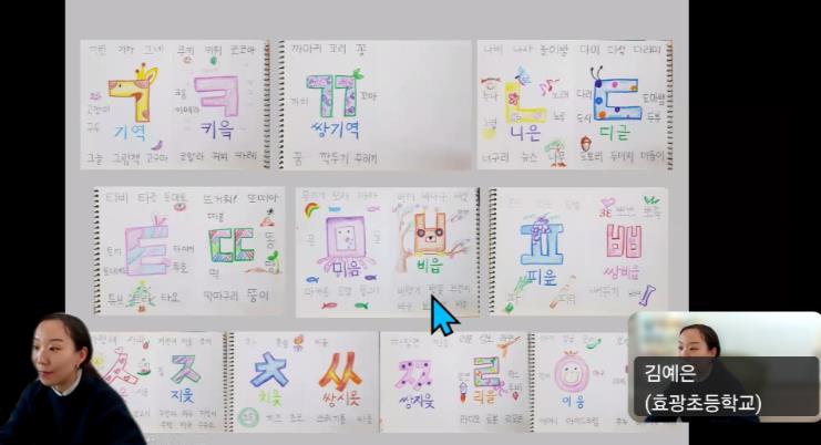 | 김예은 효광초 교사가 28일 온라인을 통해 일본 오사카 소재 한글학교 교사들에게 한국어 지도법을 설명하고 있다. |