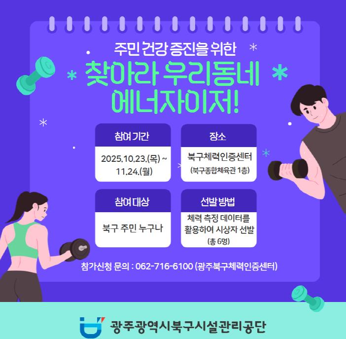 | 광주광역시북구시설관리공단 북구체력인증센터'찾아라 우리동네 에너자이저!'개최 |