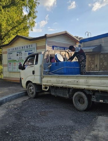| 농업인이 BM활성수를 용기에 공급받고 있는 모습 |