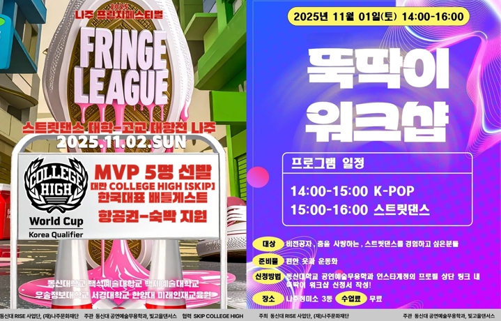 나주문화재단은 오는 11월 1일부터 2일까지 나주정미소(나주시 과원길 5)에서 ‘2025 나주 프린지 페스티벌 프린지리그’를 연다고 28일 밝혔다.