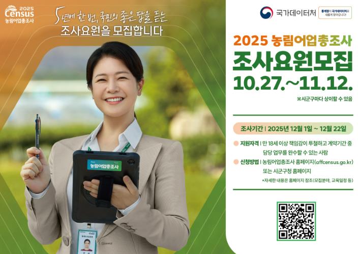 | 남원시, 2025 농림어업총조사 조사요원 모집 |