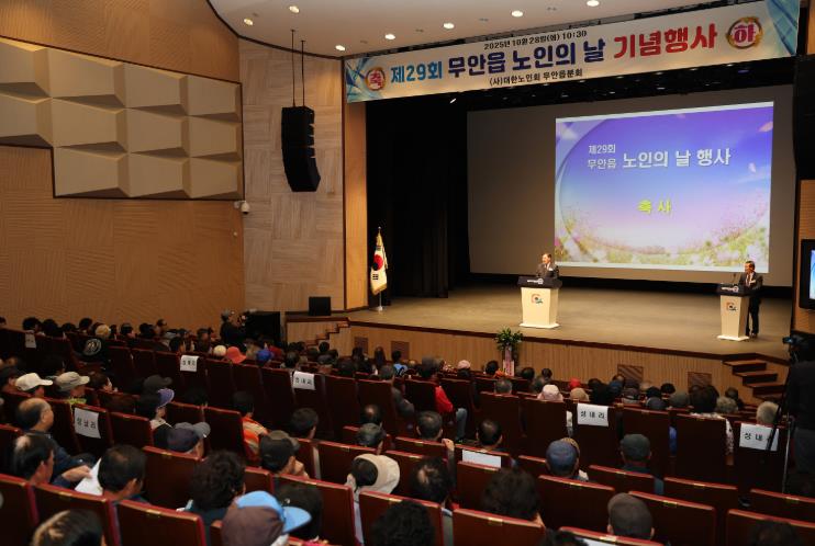 김산 군수는“제29회 무안읍 노인의 날을 진심으로 축하드리며, 오늘의 무안이 있기까지 헌신과 노력을 아끼지 않으신 어르신들께 깊은 존경과 감사드린다”며, “앞으로도 어르신들이 더욱 행복하고 활기찬 노후를 보낼 수 있도록 ‘무안을 더 크게, 어르신들의 삶을 더 높게’ 만들어 가겠다”고 말했다.