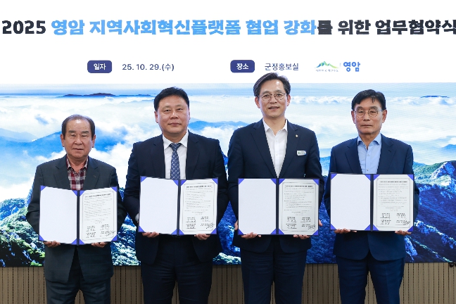 박영하 영암군 자치행정과장은 “이번 협약으로 영암 지역사회 혁신과 영암군민 삶의 질 향상을 위한 민·관 협력 기반을 마련하게 됐다. 더 나은 지역사회 만들기를 위해 각 기관과 다양한 사업을 진행하겠다”고 말했다.