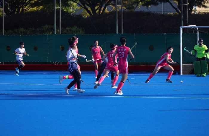| KT sports 직장운동경기부 하키팀(분홍색 선수복) 2025 전국체전 동메달(사진 제공 대한하키협회)/2025년도 직장운동경기부 운영 지원 공모 선정 70,000천 원 국비 지원 |