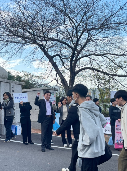 | 2025학년도 대학수학능력시험 당시 정기명 시장 수험생 응원 현장(여수충무고) |