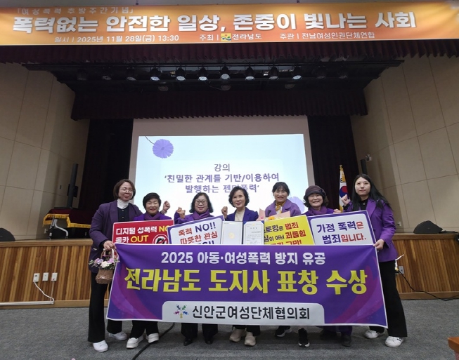 | 1월 28일, 신안군여성단체협의가 2025 여성폭력추방주간 기념행사에서 ‘전남도지사 표창’을 수상했다. |