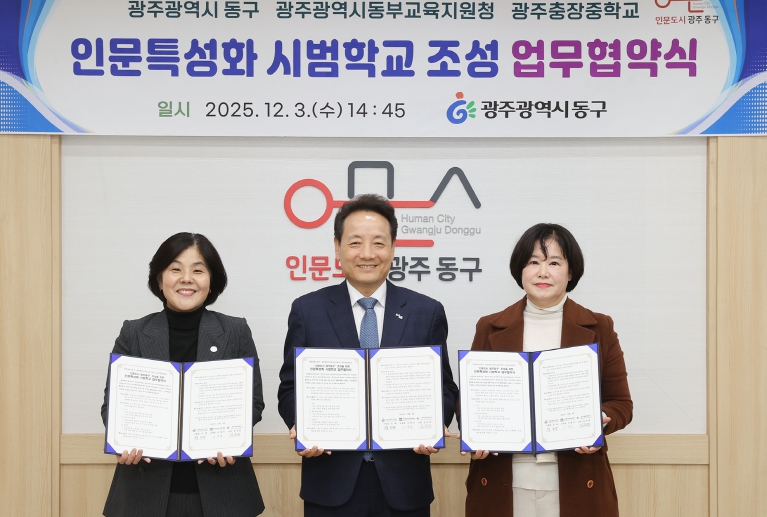 동구 관계자는 “이번 협약은 지역 인문교육 기반을 더욱 공고히 하는 중요한 출발점”이라면서 “지자체·교육청·학교가 함께 만드는 협력 모델로서 향후 관내 전체 학교로 확대될 수 있는 시범적 의미를 갖는다”고 말했다.