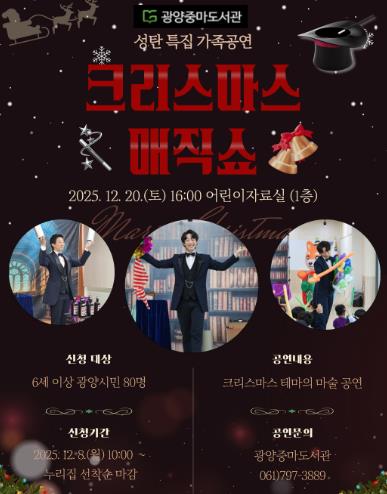 | 광양중마도서관, 성탄 특집 ‘크리스마스 매직쇼’ 공연 개최 |