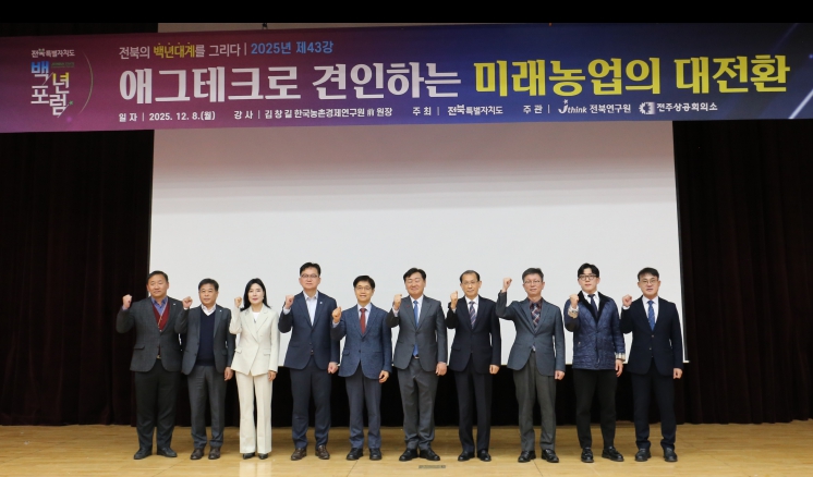 한편 ‘전북 백년포럼’은 전북특별자치도가 주최하고 전북연구원과 전주상공회의소가 공동주관하며, 관련 실무부서 담당자와 출연기관 및 유관기관 임직원 등이 참석한다.