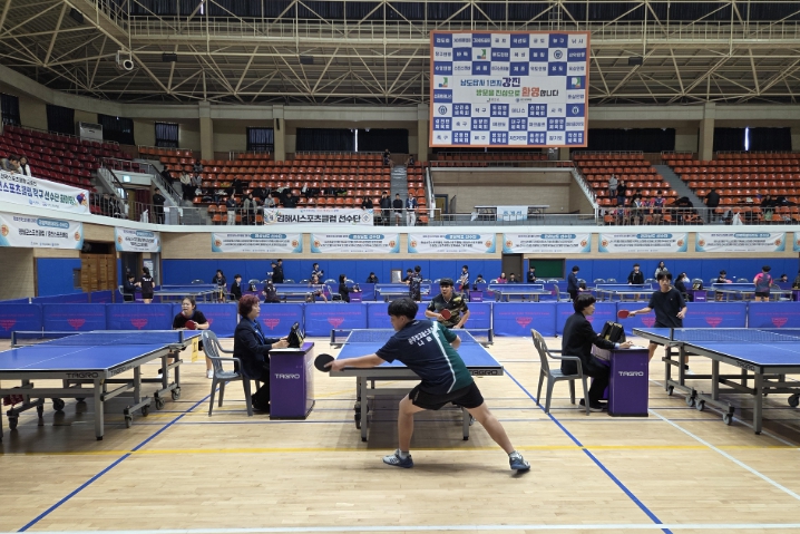 | 2025 스포츠클럽 탁구 교류전 모습(광주빛고을스포츠클럽),전갑수 체육회장 |