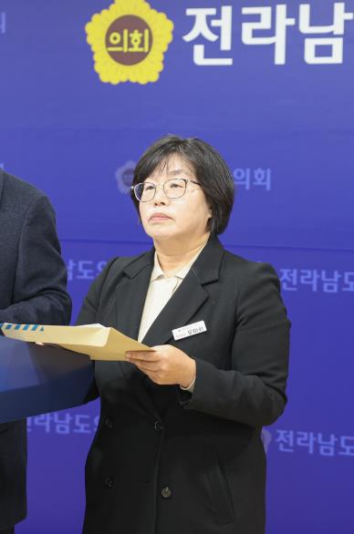 | 1월 8일, 도의회 브리핑룸에서 진보당 소속 전남도의원이 ‘광주-전남 행정통합, 주민투표를 실시해야 한다’는 기자회견을 열였다. |