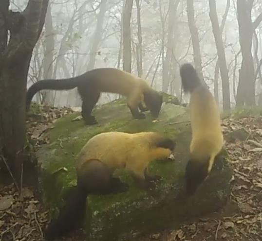 | 고창문화관광재단, 방장산 환경조사 중 CCTV에 포착된 담비 개체군(2025년10월19일 촬영). |