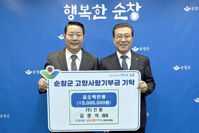 | ㈜건화 김문석 대표이사, 순창군에 고향사랑기부금 500만원 기탁 |