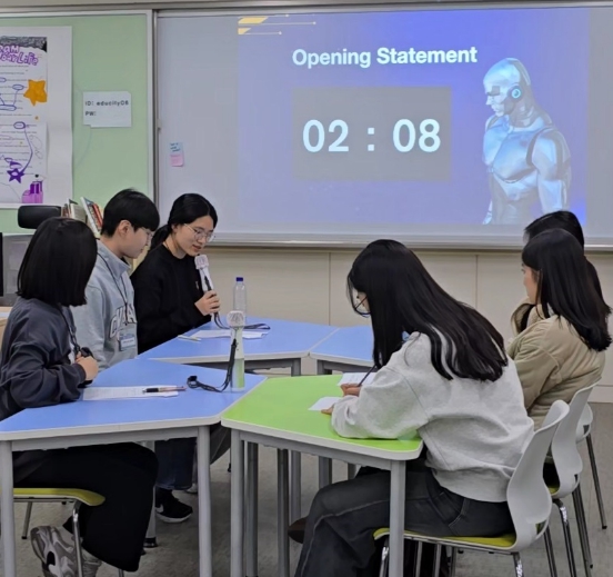 | 학생들이 인공지능(AI) 윤리를 주제로 영어 토론을 진행하고 있다. |