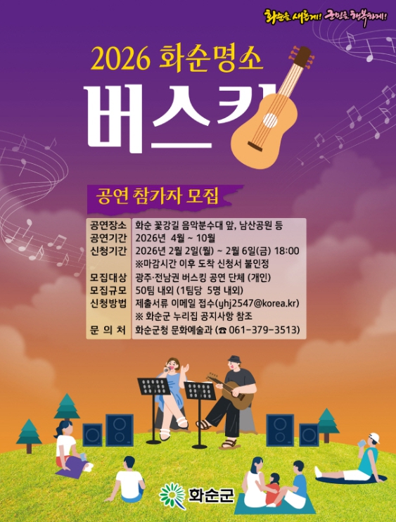 | 2026년 화순 명소 버스킹 참가자 모집 포스터 |