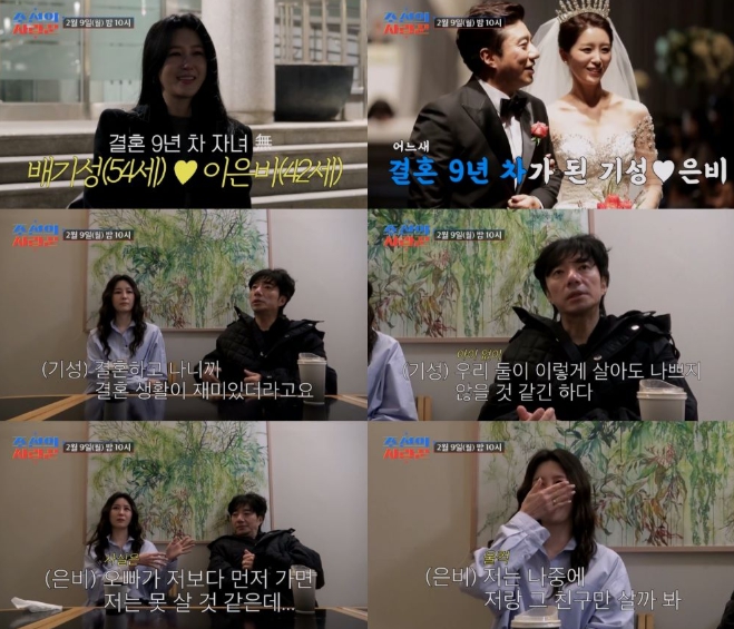 아이 없이도 사랑이 넘치는 배기성♥이은비 부부의 솔직한 속내는 극사실주의 다큐 예능 TV CHOSUN ‘조선의 사랑꾼’에서 2월 9일(월) 오후 10시에 공개된다.