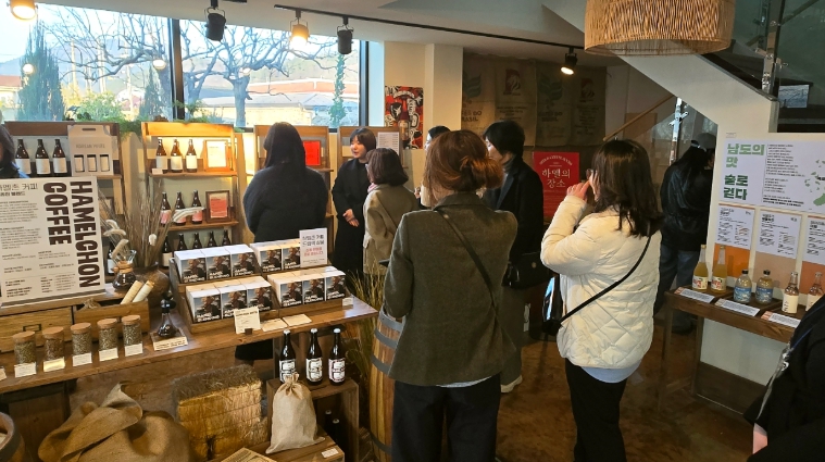 팝업스토어 공간은 방문객 동선과 체험 흐름을 고려해 ▲맥주 원료 체험 ▲ 하멜촌맥주+코리안 화이트 선물세트 구성 ▲브랜드·제품 소개(스토리) ▲맥주와 커피 시음·체험 ▲구매·상담 ▲‘남도의 맛, 술로 걷다’ 연계 콘텐츠로 구성했다.
