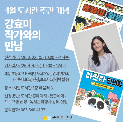 | 김제시립도서관, 4월 도서관 주간 행사 강효미 작가와의 만남 진행 |