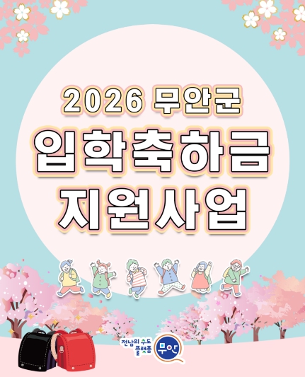 지원 금액은 초·중·고등학교 신입생 1인당 10만 원, 대학 신입생 1인당 100만 원이며, 무안사랑상품권으로 지급된다.
