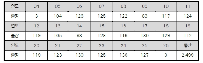 | 삼성 강민호 연도별 출장 경기 수 |