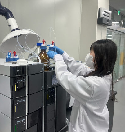| 농산물안전성분석실 담당자가 잔류농약 분석용 용매를 교체하는 모습 |
