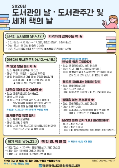 | [포스터] 광주중앙도서관, 12~18일 ‘도서관주간’ 행사(본관 중앙도서관) |