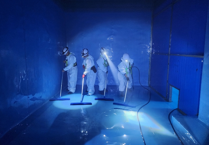 | 정·배수지 청소 중 모습 |