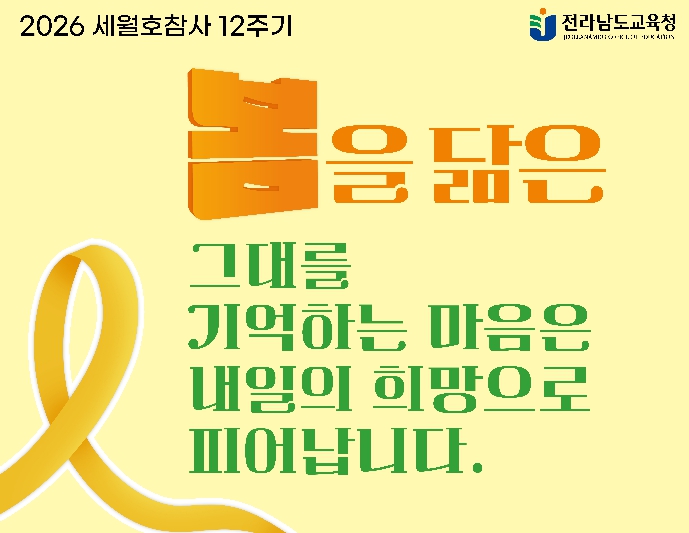 김광식 민주생활교육과장은 “세월호 교육은 특정 시기에 머무는 계기교육이 아니라, 교육과정 속에서 지속적으로 이어져야 할 삶의 교육”이라며 “학생들이 기억을 바탕으로 더 안전하고 책임 있는 사회를 만들어가는 주체로 성장하도록 지원하겠다”고 밝혔다.