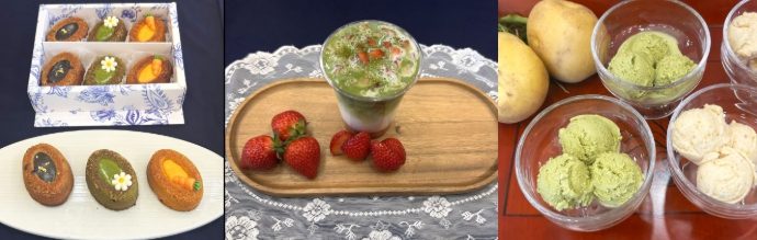 | 보성군, ‘제49회 보성다향대축제’ 먹거리 시식회 개최_축제장 먹거리 부스 디저트(녹차로만든 빵, 말차딸기라떼, 녹차젤라또) |