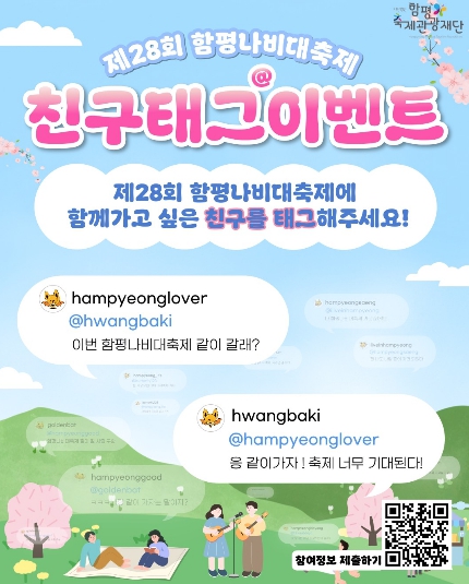 ‘같이 축제가자!’ 댓글 이벤트는 축제를 함께 즐길 동반자를 태그하며 기대감을 나누는 참여형 이벤트로, 오는 19일까지 재단 공식 인스타그램을 통해 참여할 수 있다.