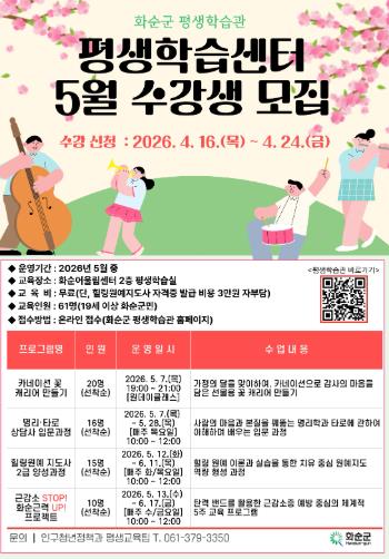 | 5월 평생학습센터 프로그램 수강생 모집 홍보 포스터 |