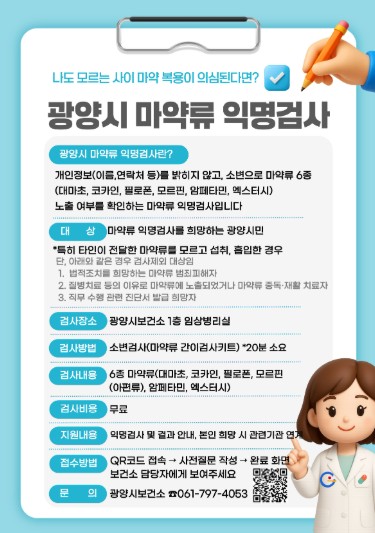 | 광양시보건소, 마약류(6종) 무료 익명검사 실시 |