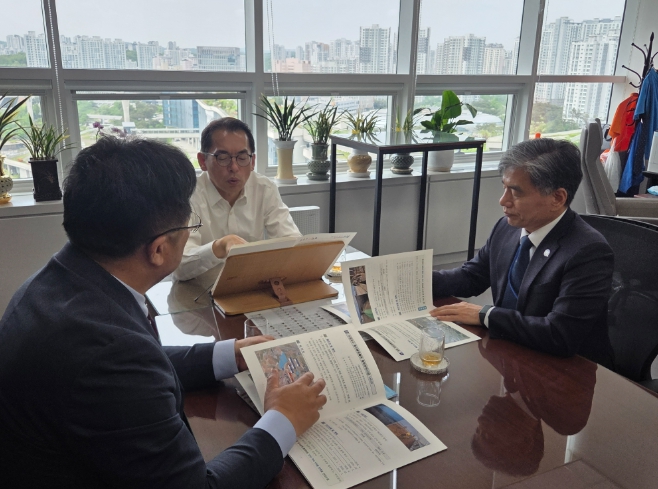 이날 건의한 주요 사업은 ▲고수 평촌 자연재해위험개선지구 정비(290억원), ▲대산 산정지구 풍수해생활권 종합정비(308억원) ▲아산 상갑지구 가뭄자연재해위험개선지구 정비(126억원) 등 총 3개 사업이다.
