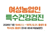 담양 이원희 기자2026. 03.13[호남자치뉴스]옹진군은 올해 처음으로 여성농업인의 건강권 보호를 위한'여성농업인 특수건강검진사업'을 본격 시행한다고 밝혔다. 이번 사업은 농작업으로 인해 근골격계 질환 등 직업성 질환에 취약한 여성농업인을 대상으로 건강검진 및 예방 상담을 지원하는 사업으로 여성농업인의 삶의 질 향상과 안정적인 영농 활동을 지원하기 위해 추진된다. 지원 대상은 옹진군에 거주하며 농업경영체에 등록된 짝수년도 출생의 51세부터 80세까지 여성농업인으로, 올해는 총 60명을 대상으로 실시되며, 검진 비용은 1인당 22만 원이며, 이 중 19만8천 원...