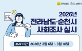 순천 이원희 기자2026. 03.04[호남자치뉴스]순천시는 시민들의 삶의 질적 수준과 사회 상태의 변화를 파악하기 위해 오는 6일부터 13일간 2026년 사회조사를 실시한다고 밝혔다. 사회조사는 시민 생활 전반에 대한 주관적 인식과 만족도, 정책 수요 등을 종합적으로 살펴, 향후 정책 수립과 평가분석, 학술 연구 등에 활용할 기초자료를 마련하기 위해 매년 시행된다. 조사 대상은 국가데이터처에서 선정한 순천시 1,008 표본가구의 만 15세 이상 가구주 및 가구원이며, 조사원이 직접 가구를 방문하여 조사를 진행한다. 조사 항목은 총 45개 지표로 구성되어 있...