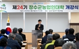광주광역시 이원희 기자2026. 03.05[호남자치뉴스]장수군은 4일 농업기술센터 대강의실에서 교육생 80여 명이 참석한 가운데 ‘제24기 장수군 농업인대학’ 개강식을 개최하고 본격적인 교육 운영에 들어갔다. 이날 개강식은 최훈식 장수군수의 격려사를 시작으로 교육 일정과 운영 방향 안내, AI 활용 농업 경영 및 마케팅 특강 순으로 진행됐으며 변화하는 농업 환경에 능동적으로 대응하기 위한 교육의 출발을 알렸다. 올해 농업인대학은 △사과반 △두릅반 △신규농업인 기초영농반 등 3개 과정으로 운영되며 3월부터 11월까지 총 33회, 142시간에 걸쳐 체계적인 교육이 진행...
