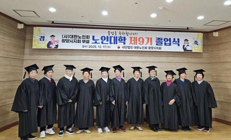 행사에는 졸업생과 가족을 비롯해 대한노인회 광양시지회 임원, 유관기관 관계자 등 100여 명이 참석해 졸업의 기쁨을 함께 나누며 의미를 더했다.