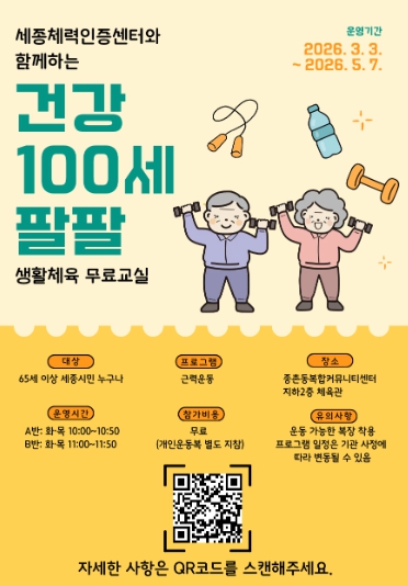 오영철 세종특별자치시체육회장은 “어르신들이 안전하게 운동을 시작하고 꾸준히 실천할 수 있도록 운동 프로그램을 구성했다”며 “건강한 100세 시대를 준비하는 계기가 되길 바란다”고 말했다.
