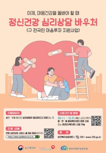 | 정읍시, 우울·불안 극복 돕는 ‘심리상담 바우처 지원’…최대 8회 제공 |